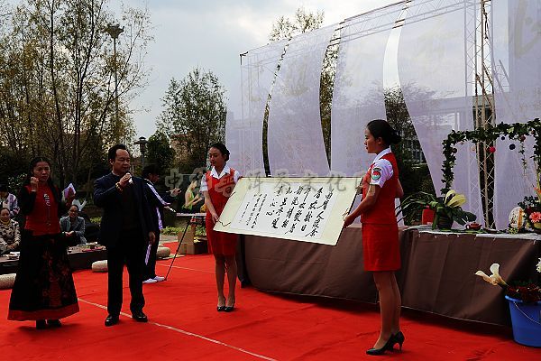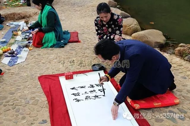 蓝天、白云、依水、品茶,惬意十分 采珠江源头之水冲泡爱随茶香普洱茶 珠江流域滇、黔、桂、粤四省领导和专家的题词 葳盛茶业董事长张明春先生现场题词以抒发饮水思源之深情、畅享普洱之幽意