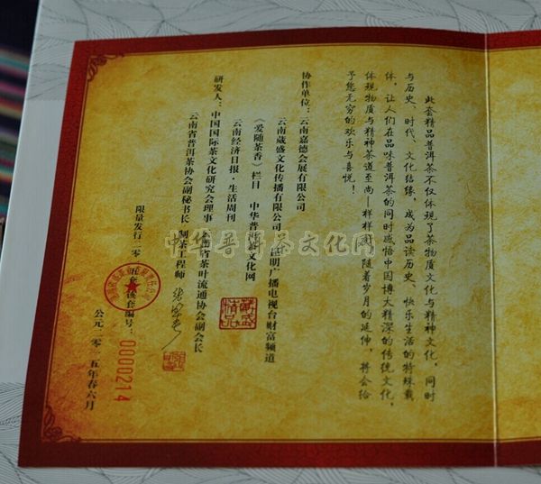2015年为庆祝第3届中国南亚博览会暨第23届中国昆明进出口商品交易会首次在昆明滇池国际会展中心盛大举办。葳盛茶业公司作为唯一授权使用南博会吉祥物的普洱茶研发企业研发精制了以高山云雾、原野生态的云南乔木大叶种为原料的【普洱香思】精品套装及【古树香思】,并限量收藏2015套,现有部分精品套装可选购。