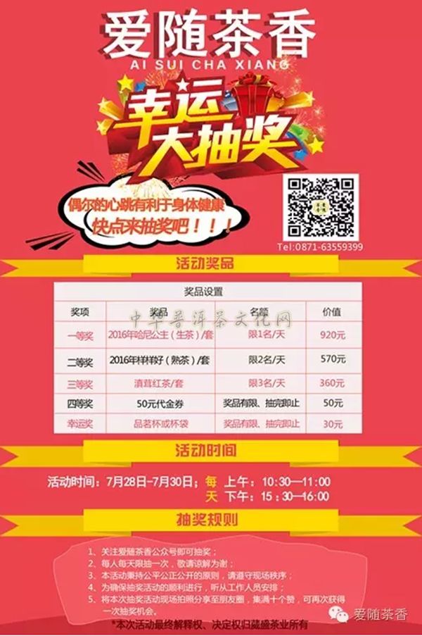 对于此次茶博会,为了让各位爱茶之人不虚此行,我们在现场精心准备了精彩的抽奖活动,只要你来参与,就有可能赢取好礼。
