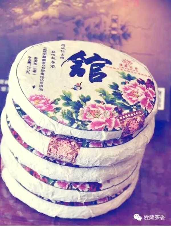 以蓝色为底,山水画为图,清雅朴素,每片茶的外包装纸是花鸟图案,十分幽雅,特别而精制的证书上有云南普洱茶协会会长张宝三、云南民族茶文化研究会会长李师程的亲笔题词和签名。葳盛茶业董事长张明春先生认为这五个字代表不同的寓意,即茶,须用情感去品,才越品越醇香;人,用真诚去处,越处越心近;书,早用欲望去读,才越读越需求;壶,用爱心去养,越养越情深;馆,用诚信去做,越做越趣浓。它不仅集中浓缩了六大茶山乔木古树茶之精萃,更浓缩了一个爱茶人对茶的理解和借茶表达的全部思想感情及对人生的美好追求,堪称优秀传统普洱茶之典范。