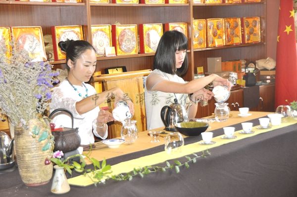 ▲葳盛茶业高级茶艺师李艳、马荣梅为大家冲泡「爱随茶香」普洱茶