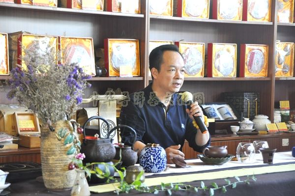 ▲明春先生绘声绘色的为大家讲解这片茶的成长历程