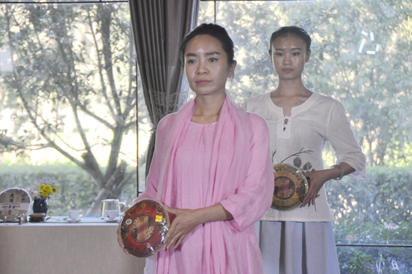 现在向我们走来的是葳盛优秀茶艺师徐莹,手持葳盛普洱——『茶人书壶馆』