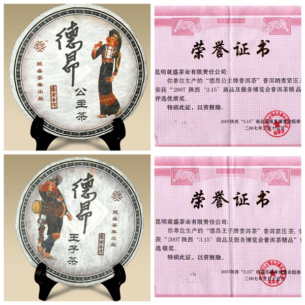 2007年3月葳盛茶业参加陕西“3.15”商品及服务博览会,其中葳盛茶品“德昂公主茶”和“德昂王子茶”分别荣获“优质奖”和“银奖”