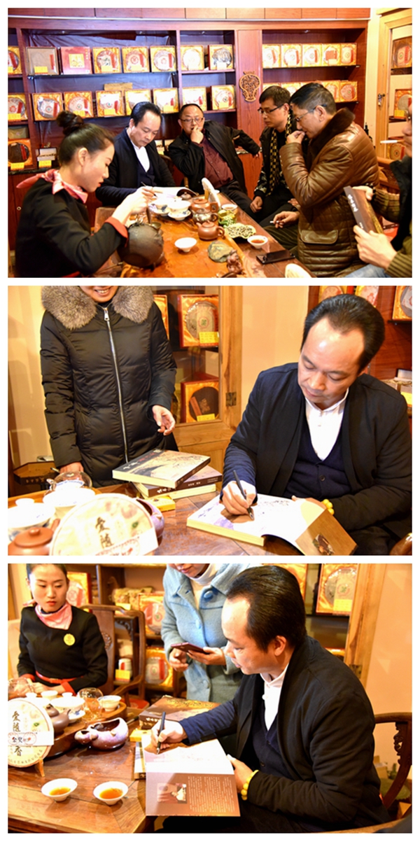 在参观交流之际,各位同仁向张明春先生“讨要”《鸣春话茶》《鸣春话茶》是葳盛茶业董事长张明春先生从事茶业十几年的心血力作,自出版以来深受读者喜爱。