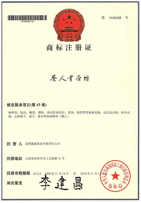 同时,【茶人书壶馆】经国家工商总局商标局商标专利部门批准,是企业加盟及旗舰店的统一称号。