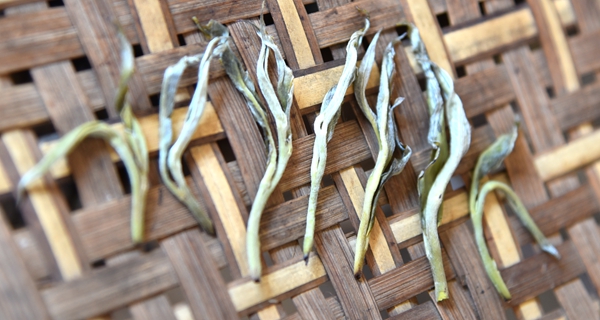 老班章是标准的大叶种茶,条索粗壮,芽头肥壮且多绒毛。