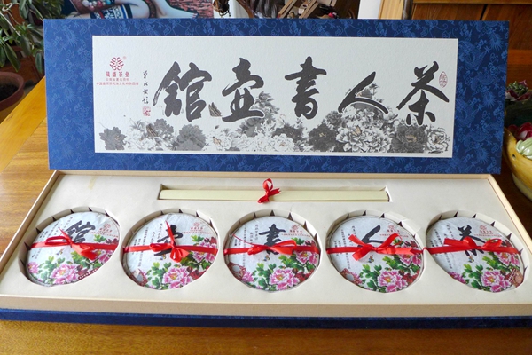 葳盛茶业董事长、制茶匠人张明春先生亲自为中国道教协会副秘书长、云南省道教协会会长廖东明道长送上『茶人书壶馆』一套。