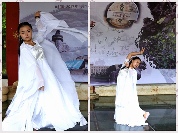 在表演之际,葳盛茶业总经理李艳为大家展示了葳盛茶业象征性典型茶品——哈尼公主茶。哈尼公主普洱生茶口感羞涩甜润,是根据世代吃茶种茶的云南少数民族哈尼族而来。