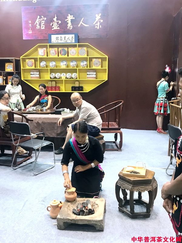 地道的云南佤族茶艺表演,吸引了众多茶友。民族茶艺讲究动静结合,是云南少数民族茶生活的再现。首先用壶将水煮沸,用一块簿铁板烧烤茶叶至焦黄后,先将茶倒入开水壶进行烤煮,煮3至5分钟后,即可倒出,佤族烤茶茶味浓酽,口感鲜爽。