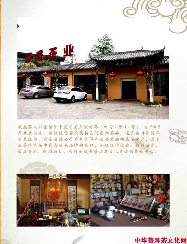 经过多年的发展,茶人书壶落成多家,其独特的文化底蕴一直深受广大茶友的喜爱,在业界产生了良好的口碑,荣获“中国茶行业普洱茶特色文化馆品牌”称号,葳盛茶业荣获“云南省十佳茶文化传播企业”殊荣。