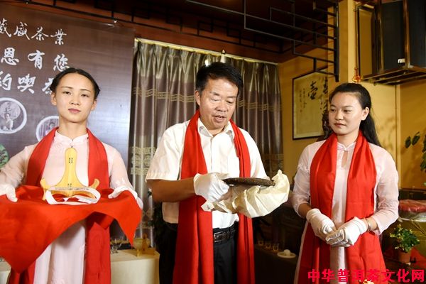 葳盛三位优秀茶道艺术师马荣梅、杨涛、吕晓燕同时冲泡“茶王”