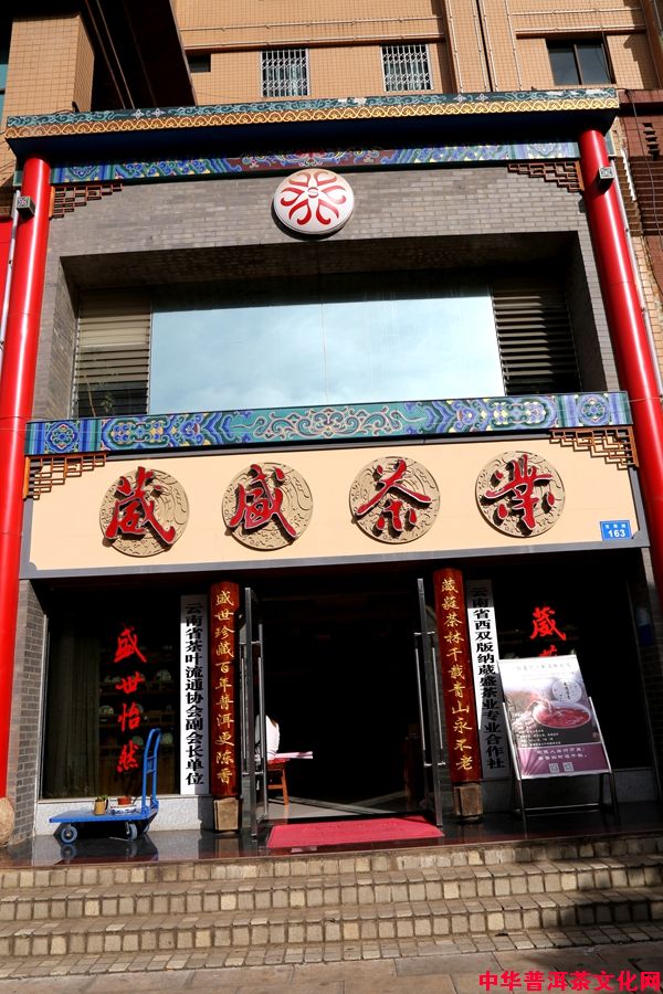 “葳蕤茶林千载青山永不老,盛世珍藏百年普洱更陈香”。这是葳盛茶业公司脍炙人口的一副藏头联,不仅道出了客观自然世界的本质,而且肯定了普洱茶愈陈愈香的保值增值特性,既蕴涵了人生哲理,又揭示了跨越时空的优质普洱茶内涵的真谛,使之神形兼备、气韵双收,让读者遐想连翩,思绪广远,不失为一种文化的熏陶,久久辗转于人世沧桑与茶文化溪泉流淌的涟漪之中,徘徊在葳盛生机盎然的门庭之内,感慨万千,难以平静。