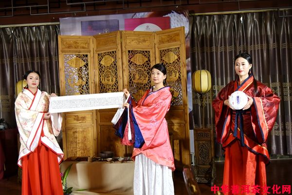 茶艺师展示单永钦先生《三国演义》古风篇,此古风篇为单永钦老师亲笔书写。