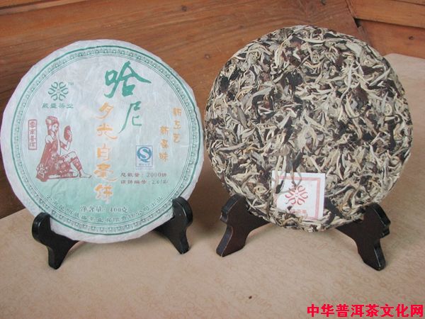 〖哈尼月光白毫饼〗是昆明葳盛茶业早在2008年精制的一款新工艺、新品位的茶品,该茶采用特殊工艺制作而成,饼形大气圆润,白毫彰显。