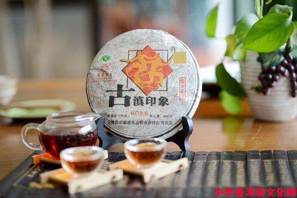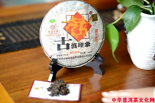 〖古滇印象〗普洱熟茶特点:它有历史的韵及传统普洱熟茶的纯,对于个人而言,它综合了布朗的厚,僾尼的甜,从用料到拼配的比例协调统一,层次感强。