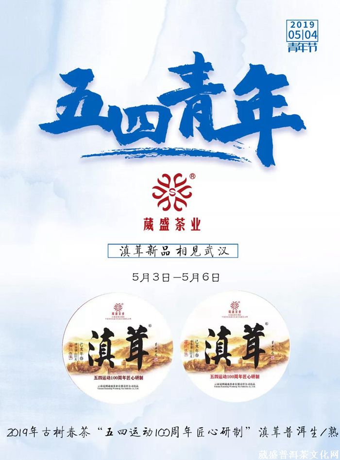 特别一提:由葳盛茶业董事长、国家高级制茶工程师张明春先生亲自研发的2019年古树普洱春茶之一的“五四运动100周年匠心研制”滇茸普洱茶生/熟饼将首次亮相武汉茶博会;1919年5月4日国内爆发的五四爱国运动时至2019年5月4日正值100周年纪念日,葳盛茶业为弘扬伟大的爱国精神,特别精选云南大叶种乔木古树茶箐为原料,于今年春季采摘加工制作而成,不论是品茗还是收藏都不失为好的选择。