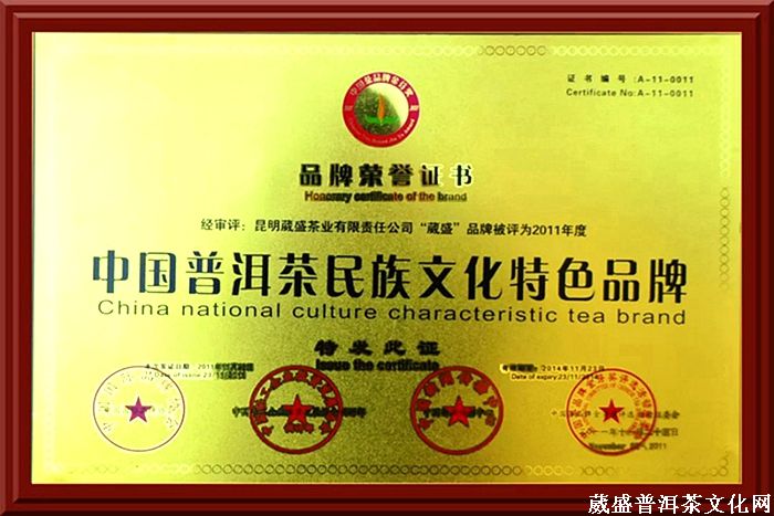 2019年(己亥年)葳盛茶业匠心研制体现着中华民族文化自信、民族团结、和谐、祖国兴旺昌盛的哈尼公主茶,2005年问世至今,每年都有限量发行,作为云南民族文化代表,她精选云南澜沧江流域古茶山乔木大叶种古树春茶茶菁为原料,以民间传统工艺精制而成,条索肥壮,饼形圆润饱满,汤感醇厚饱满,花蜜香明显,回甘持久,是品鉴和收藏的极佳饮品!在5月份的第19届武汉茶博会期间,葳盛茶业参与“2019中国好茶叶/茶馆最受消费者喜爱的品牌”活动,经过大众网络投票和专家委员会评定,昆明葳盛茶业有限责任公司最终荣获“中国好茶叶最受消费者喜爱的品牌”称号。