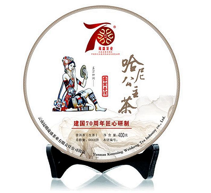 自此以后葳盛茶业就着力于打造民族普洱茶文化第一品牌,以美丽的哈尼族少女拿着铜镜照着羞涩甜润的面容作为哈尼公主茶品牌形象,代表葳盛印象走出深闺,走向全国乃至全世界。葳盛茶业相继打造了丰富多彩的哈尼公主品牌系列茶品,有哈尼公主砖,哈尼乔木王青饼,哈尼小圆饼,哈尼金瓜,及熟茶哈尼乔木古树砖,哈尼乔木陈醇饼,哈尼普洱茶砖等。因哈尼公主茶原料均采自高山云雾乔木大叶种古树茶且是头春春尖,因此数量极其有限,所以每饼哈尼公主茶都有编号及总量,是云南民族茶文化研究会推荐品牌,代表葳盛普洱印象和体现民族文化普洱的当代普洱茶经典之作,健康、纯正,自然、生态的民族特色普洱茶让人们产生了深刻印象,享普洱就喝哈尼公主茶。