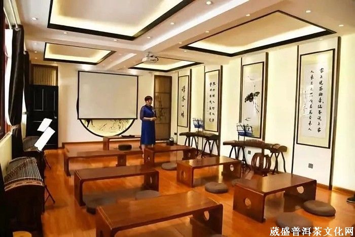 三楼茶道教室:设有专业的教学和投影设备,成立云南艺海丰职业培训学校的保山分校,为茶行业各岗位输送精英。