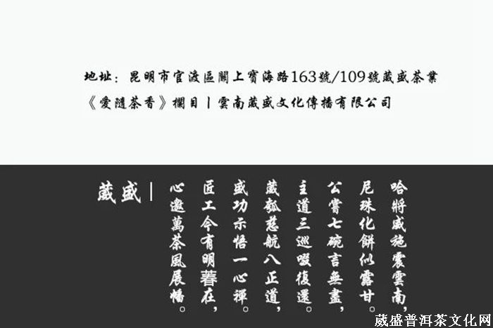 葳盛茶业地址:云南省昆明市官渡区关上宝海路163号