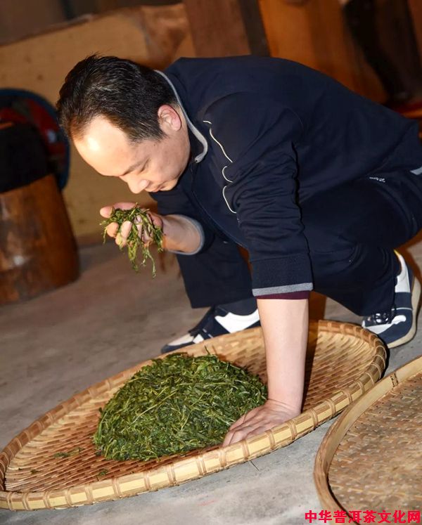 制茶匠人、国家级高级制茶工程师张明春先生选取了23号茶树的鲜叶开始杀青,杀青是制茶过程中最为重要的一个过程之一,所谓一人一味,在这个过程中每个师傅的杀青手法也决定了茶的口感。