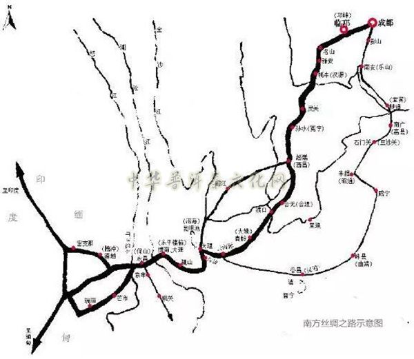 据史书记载,我国古代通往西域的国际陆路交通要道主要有两条。一条是从古都长安出发,沿河西走廊出新疆西行,通往地中海,抵达罗马各地。一条是以巴蜀(今成都为起点)经夜郎,入古滇出缅甸,达身毒(今印度)及西亚、南亚诸国。