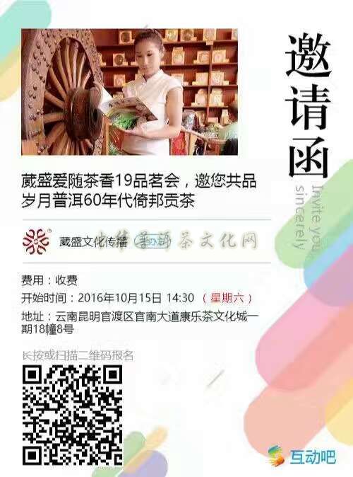 2016年10月15日(星期六)下午14:30—17:00,“爱随茶香19品茗会”与您不见不散!