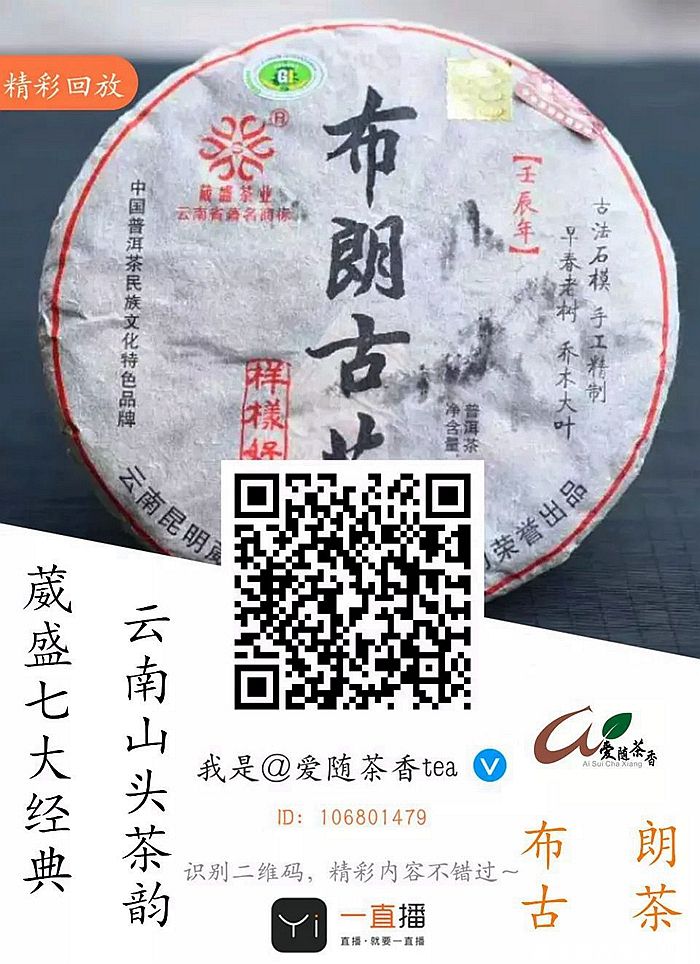 在之前的直播品鉴节目中,茶道师们已为茶友们分享介绍过“葳盛七大经典”系列中的“南糯原味”、“苦竹天籁”、“景迈蜜香”、“易武春尖”、“倚邦贡茶”,五款著名山头普洱生茶;10月21日15时,葳盛茶业高级茶道艺术师尹江继续带领茶友们品鉴“葳盛七大经典”之“布朗古茶”,扫描下图二维码,进入“一直播”平台“爱随茶香tea”直播间,可观看精彩回放内容。