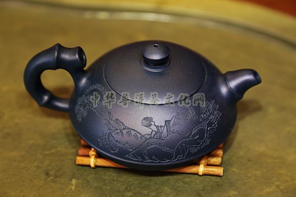 2)墨绿泥:近天青泥色调,玩家易感迷惑,常误云"绿泥",绿泥者,澹草绿色也;"本山绿泥者缎泥之原矿矣,泥色青蓝略泛绿光而(无灰色调),始称"墨绿泥"。泥性:黏性佳,张力尚可,细腻密实;制壶光、花均宜;为优质泥矿,产量不丰。难度:较易变形,对窑温要求高,窑温足则色泽温润,不足则色嫩枯燥,原料收集不易,练制困难与繁复。特点:泥色特异,青蓝色中略泛绿光,清秀独特;稍一泡养,色调更形稳实,温润透明,变化甚巨,玩赏深具成就感。