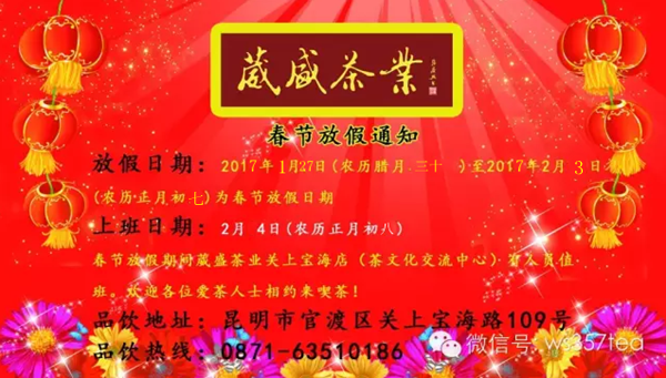 葳盛茶业 放假通知