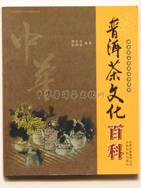 中华普洱茶文化百科于2006年由云南出版集团公司出版、云南科技出版社发行,本书由云南省普洱茶协会会长助理、副秘书长、技术质量委员会副主任委员,云南民族茶文化研究会副秘书长、学术委员张明春和云南省社会科学院研究员,云南财经大学教授、硕士生导师蒋文中共同编著而成。