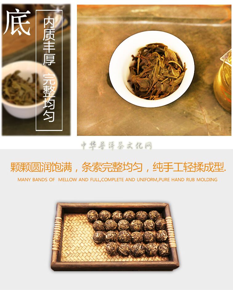 纯手工轻揉成型的龙珠茶,颗颗圆润饱满,条索完整均匀,细微处却又各自不同,犹如一个个独特的生命体。精美小巧、便于携带、冲泡方便、无需针刀、一粒一泡。