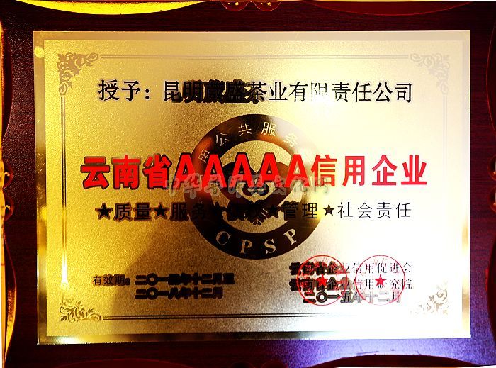 >> 葳盛茶业荣膺“云南省AAAAA信用企业”称号