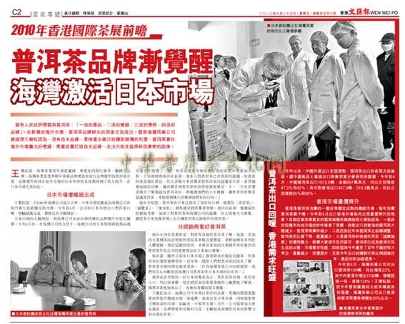 植田说,虽然目前在日本市场上卖得最多的还是乌龙茶,但普洱茶的发展态势很好。近年来,随人们对普洱茶的逐步了解,普洱茶市场的增长速度很快。「作为海湾茶业公司的经销商,我们有信心不断提高海湾公司普洱茶在日本市场的占有率。」