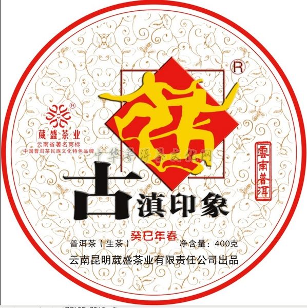 为传承历史,弘扬古滇文化,葳盛茶业于癸巳年春开发研制了该款中国古滇文化与普洱茶文化的完美结合之尚品【古滇印象】普洱茶,并已获得国家工商总局商标局商标专利部门批准使用,该款精选云南乔木大叶种古树茶菁,以民间传统工艺精制而成的普洱茶。古滇文化所代表的不仅是云南古代各族人民智慧的结晶,也是中国古代文化的重要组成部分,体现出勤劳善良的云南少数民族不断奋进、开拓、创造出丰富多彩的云南民族文化。多彩生活,载歌载舞的人形图案,象形“双囍”之意境,呈现出一幅努力向前,共创美好未来,拥有着快乐、吉祥的幸福生活美景。
