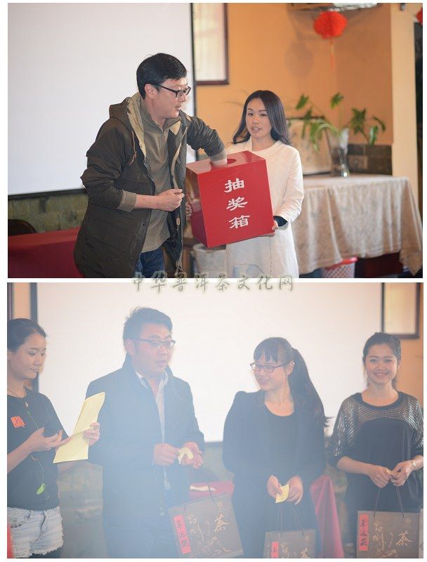 总结会结束后,下午进行了多姿多彩的文艺演出,全部由葳盛员工自己编排。在一支欢快喜气的抓财舞中热烈开场了,接下来有一系列的精彩节目,如茶文化交流中心团队表演的舞蹈《day by day》,葳盛团队合唱歌曲《青春舞曲》,独唱《彩云之南》、舞蹈《小苹果》、《肚皮舞》,副总代青演唱了《好人一生平安》等等。充分展示了茶艺师们专业以外的多种才艺,还给宾客及家人们带来了节日的问候和祝福。每年的保留节目依然是抽奖环节。节目之间依次抽出了幸运奖3名,三等奖3名,二等奖2名,一等奖1名。奖品都是葳盛的品牌普洱精品、名家紫砂壶等。抽奖让活动高潮不断,惊喜连连,为了尽兴,还临时增设特等奖一名,奖品是10年历史的葳盛珍藏版哈尼公主大饼套装,这套茶纪念意义非凡,它开启了葳盛品牌建设发展之路,听到“哈尼公主”这个响亮亮的名字时葳盛人充满了骄傲!