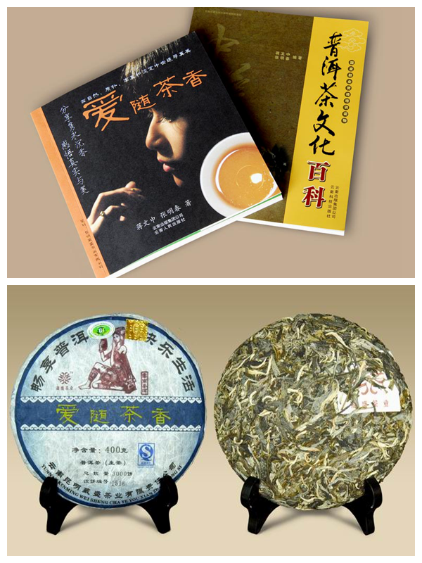 2007年昆明葳盛茶业总经理张明春和云南省社科院蒋文中教授一同合编了一本畅享普洱、快乐生活的茶文化书籍《爱随茶香》。此书的出版发行之后,昆明葳盛茶业有限责任公司相继以该书的主题及精神,精选开发了一款净重400克的“爱随茶香”普洱茶生饼,并举办了“签名售书”活动
