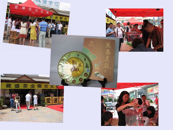 2008年5月12日,四川汶川发生8级大地震。昆明葳盛茶业有限责任公司在地震发生后于2008年5月24日在官渡区红十字会的大力支持下举行“普洱传情,爱递人间”赈灾义卖活动,将公司2007年珍藏并封存的1000片非卖品“哈尼公主茶”(400克/片)全部拿出来义卖。在社会各界茶人、茶友的大力支持下,活动共义卖“哈尼公主茶”804套,所得义卖款160800元,葳盛茶业总经理张明春个人捐款10000元及葳盛员工捐款12650元,全部捐献给地震灾区