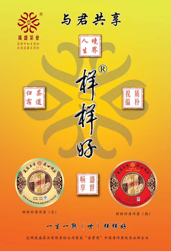 【葳盛牌样样好】普洱茶是云南生态、质朴、纯真的普洱茶代表,该茶品于2011年春精心研制开发,以普洱茶民间传统工艺精制而成,2013年春开发研制出中国吉祥文化与普洱茶文化的完美结合之尚品“大吉祥 葳盛牌样样好”,继2013年之后2015年开发精制“葳盛牌样样好”。在这快节奏的现代生活中,和谐是喜,平安是福,快乐是金,宁静是宝,样样好已成为人们表达美好祝愿的佳音。