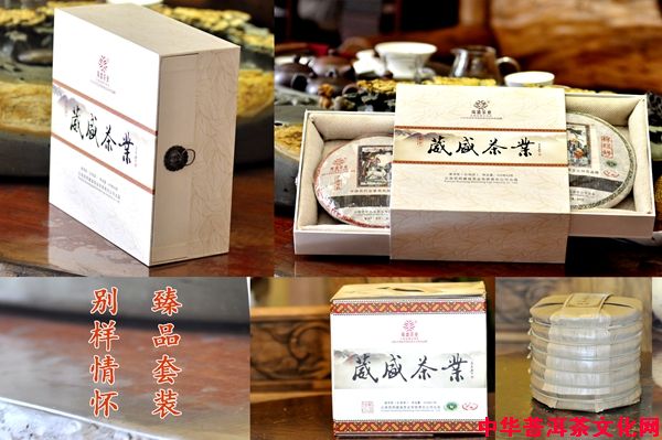 “葳蕤茶林千载青山永不老,盛世珍藏百年普洱更陈香”。这是葳盛茶业公司脍炙人口的一副藏头联,不仅道出了客观自然世界的本质,而且肯定了普洱茶愈陈愈香的保值增值特性,既蕴涵了人生哲理,又揭示了跨越时空的优质普洱茶内涵的真谛,使之神形兼备、气韵双收,让读者遐想连翩,思绪广远,不失为一种文化的熏陶,久久辗转于人世沧桑与茶文化溪泉流淌的涟漪之中,徘徊在葳盛生机盎然的门庭之内,感慨万千,难以平静。