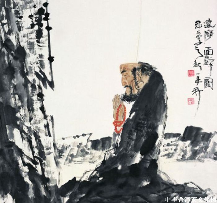 从祖师扔下眼皮的地方长出一苗灵根与清香的枝叶,祖师在后来的打坐中逢有昏沉就摘这叶子来嚼食——这就是茶。后来的禅僧也学习祖师,在坐禅时用茶汤来驱赶睡魔,养助清思……