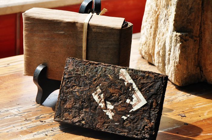 哈尼乔木古树砖档案:葳盛茶业2004年采用昆明茶厂7581传统的熟茶制作工艺及制茶经验精心制作而成。该茶采用无量山乔木古树茶菁制成。重250克、长14cm、宽9cm、厚3cm,为乔木大叶古树茶砖,用质朴的竹笋壳包装,茶砖茶面呈深褐色,色泽均匀、洁净,茶身结实,整体砖形规矩,底部有特用铜模压制的乳钉,汤色酒红、清澈油亮,绝非一般色深褐红的普通茶品可比拟。其色、香、味、韵、陈方面综合表现较好。色:红浓明亮;香:枣香;味:滋味醇厚甘甜;韵:悠长柔顺;陈:有陈香感。该茶品2004年问世,备受社会各界的青睐。