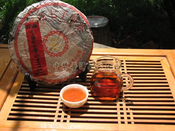 无奈海内外的需求越来越大,“印级茶”也撑不住了。普洱茶要增加产量,关键在于缩短发酵时间,这就产生了一个也是从偶然错误开始的故事。有一个叫卢铸勋的先生在香港做红茶,那次由于火候掌握不好,做坏了,发现了某种奇特的发酵效果。急于缩短普洱茶发酵时间的茶商们从中看出了一点端倪,便在香港、广东一带做了一些实验。终于,一九七三年,由昆明茶厂厂长吴启英女士带领,在这些实验的基础上以发水渥堆的方法成功制造出了熟茶。熟茶中,陆续出现了很多可喜的品牌。
