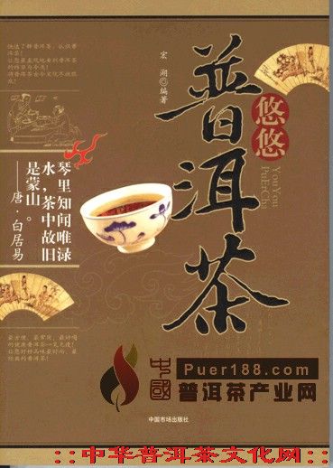 《悠悠普洱茶》宏湖编著。中国市场出版社2005年11月第一版,21万字。全书分为寻源普洱茶、了解普洱茶、普洱茶的选购与储藏、冲泡、保健、文化等六章。是一部较为翔实的普洱茶著作。