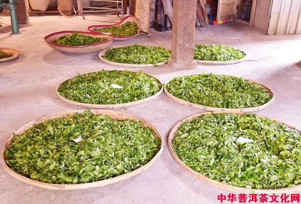 回到初制所,呈现在我们眼前的簸箕里的鲜叶都有一个对应号码牌,分别对应着从每一棵古茶树上采摘下来的鲜叶,这样做的目的保证使其“对号入座”!