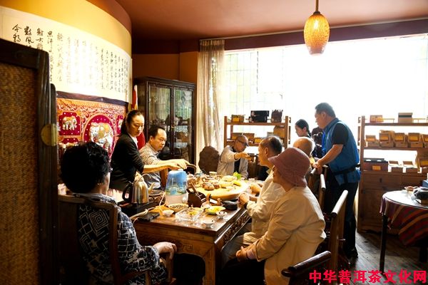 葳盛普洱府环境优雅大气,在普洱府您可以点一泡陈年老茶,一起与茶艺师品茗交流!