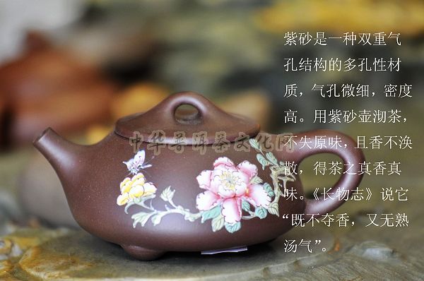 (一)紫砂是一种双重气孔结构的多孔性材质,气孔微细,密度高。用紫砂壶沏茶,不失原味,且香不涣散,得茶之真香真味。《长物志》说它“既不夺香,又无熟汤气”。