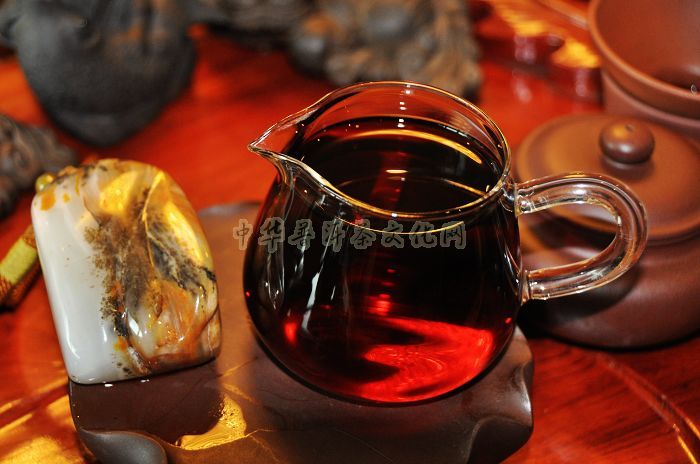 汤色酒红、清澈油亮,绝非一般色深褐红的普通茶品可比拟。其色、香、味、韵、陈方面综合表现较好。